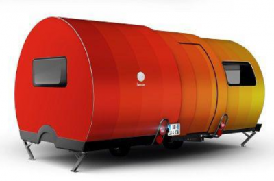 A camping trailer should have relatively large dimensions. However, its dimensions are limited by traffic regulations. The Beauer 3X trailer is transported retracted as a nested doll, two more living modules are located at its centre.
